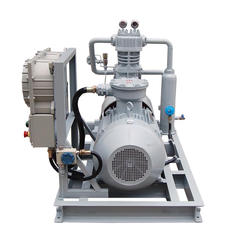 環(huán)己烷壓縮機(jī)是我公司新型產(chǎn)品,它集壓縮機(jī)、氣液分離器、安全閥冷卻器、電動(dòng)機(jī)等為一體,成一完整的機(jī)組。具有功能多、體積小、重量輕、功率小、運(yùn)行平穩(wěn)可靠等特點(diǎn),并有良好的安全性能。它為輸送氫氣,可為用戶最大限度地創(chuàng)造經(jīng)濟(jì)效益。由于采用獨(dú)特的無(wú)油潤(rùn)滑設(shè)計(jì),氣缸內(nèi)無(wú)需用油潤(rùn)滑,因而不會(huì)對(duì)介質(zhì)造成污染,使被輸送物質(zhì)保持純凈。本機(jī)設(shè)計(jì)成機(jī)組型式,許多管線上的附件都安裝在機(jī)組上,省卻了氣液分離器、穩(wěn)壓罐、安全閥、進(jìn)氣過(guò)濾器等,減小了機(jī)房的面積,減少了操作維護(hù)工作量,節(jié)省了投資。
