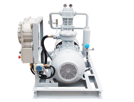 氣氨壓縮機壓縮機是我公司新型產(chǎn)品,它集壓縮機、氣液分離器、安全閥冷卻器、電動機等為一體,成一完整的機組。具有功能多、體積小、重量輕、功率小、運行平穩(wěn)可靠等特點,并有良好的安全性能。它為輸送氫氣,可為用戶最大限度地創(chuàng)造經(jīng)濟效益。由于采用獨特的無油潤滑設(shè)計,氣缸內(nèi)無需用油潤滑,因而不會對介質(zhì)造成污染,使被輸送物質(zhì)保持純凈。本機設(shè)計成機組型式,許多管線上的附件都安裝在機組上,省卻了氣液分離器、穩(wěn)壓罐、安全閥、進氣過濾器等,減小了機房的面積,減少了操作維護工作量,節(jié)省了投資。
